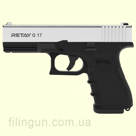 Пістолет стартовий Retay G 17 Nickel чудова копія бойового пістолета Glock 17. Дана модель є напівавтоматичною. Пістолет має ергономічний дизайн і рамку виконану з полімеру. Retay G 17 Nickel призначений для відстрілу холостих (шумових) патронів. Купити цей виріб ви можете у нас на сайті Filingun.com.ua зробивши замовлення через форму сайту або ж зателефонувавши за телефонами зазначених в шапці сайту.