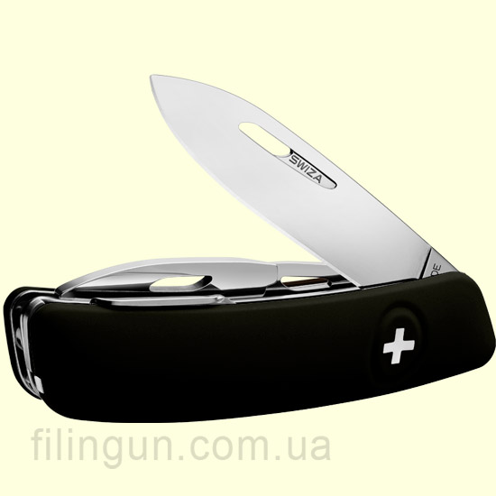 Швейцарська компанія SWIZA відкриває для вас новий світ багатофункціональних міських ножів. Швейцарський ніж Swiza D04 Black має революційний дизайн надійну м'яку рукоятку, яка комфортно лягає в руку. Ергономічна вигнута конструкція робить інструменти більш доступними, а отвори для пальців полегшують відкриття, як для лівші, так і для правшів.