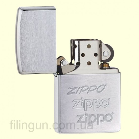 Класична бензинова запальничка Zippo 274181 Zippo Logo Brushed Chrome. Металевий корпус має матове хромоване покриття. На лицьовій стороні гравіювання логотипу компанії Zippo різних часів. Запальничка Zippo упакована у фірмову подарункову коробочку з логотипом Zippo.