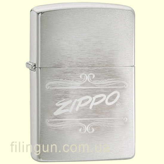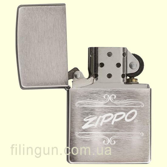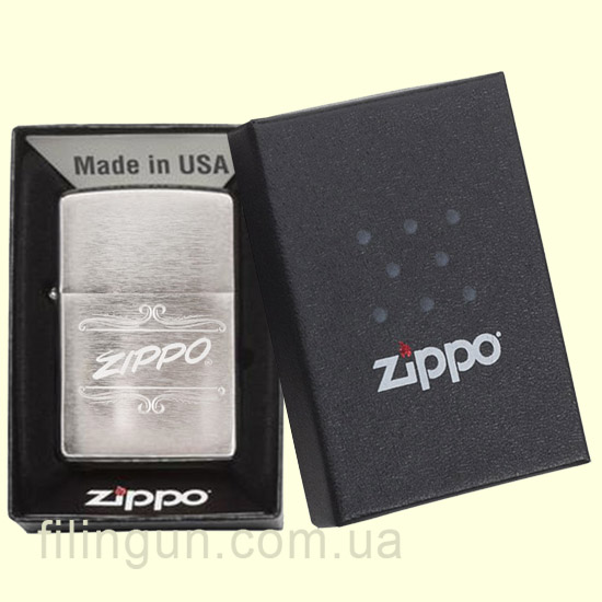 Класична бензинова запальничка Zippo 29537 Script Brushed Chrome. Металевий корпус має матове хромоване покриття, завдяки чому на корпусі не залишається слідів від пальців. На лицьовій стороні методом лазерного гравіювання нанесено вензельне зображення логотипу компанії. Запальничка Zippo запакована у фірмову подарункову коробочку з логотипом Zippo.